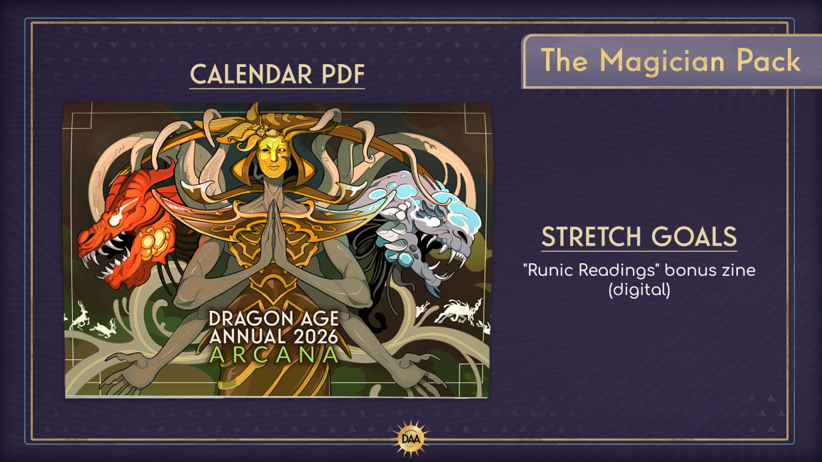 This year's theme is Dragon Age tarot, and the digital‑only release of Dragon Age Annual 2026: Arcana, is an A4, 40‑page PDF calendar alive with vibrant tarot‑inspired art and fiction which weaves a lore‑rich celebration of Thedas. Each month pairs a full‑color illustration with an original fanfic, plus five bonus works exploring “reversal” themes — characters whose arcs twist, invert, or subvert expectations, much like a card drawn upside‑down in the Fade.